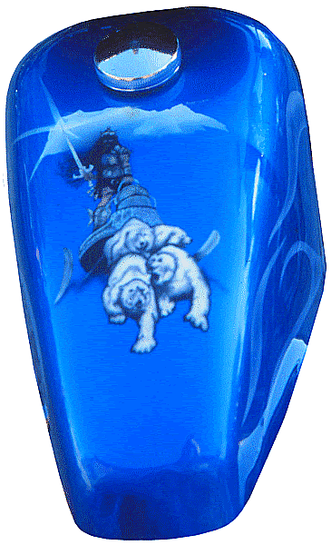 Ghost Flames are done in White Pearl on sides of tanks and fenders  |