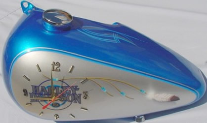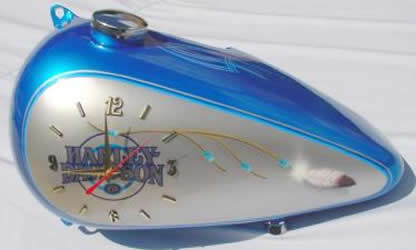 Blue with Silver Side panels, Graphics are 2000 FLHTC tank decal. Pinstriping is done in Light