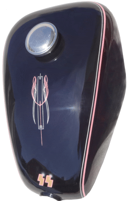 Paint has a Ebony Black base with Marbleized Candy Apple Red lower half. Silver & Pink double line stripes plus striping on top