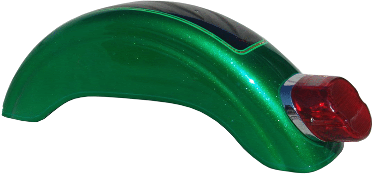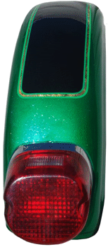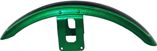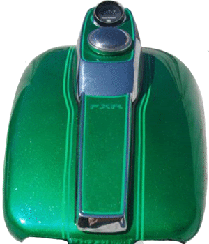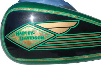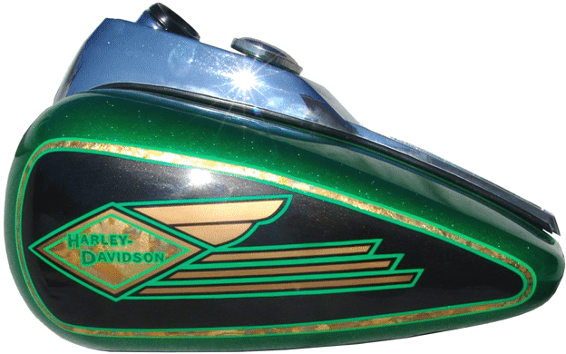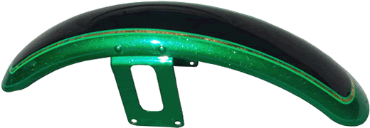 Panels are edged with Variegated Gold leaf with double striping Light Green and Lime striping Single Green stripe around edge of fenders