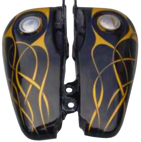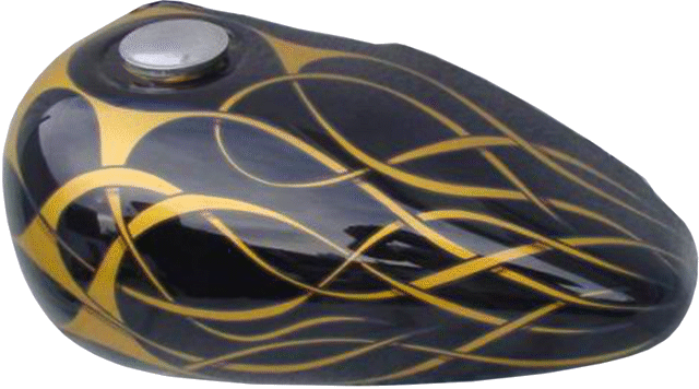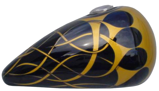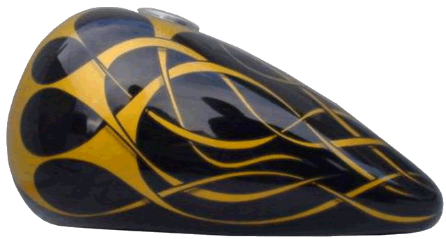 Base is Graphite Pearl Black with Ice Pearl Gold highlights Inner locking Flames are Extreme Gold with Ice Pearl Gold highlights Drop shadows to give 3-D effect Striping is Dark Gray |